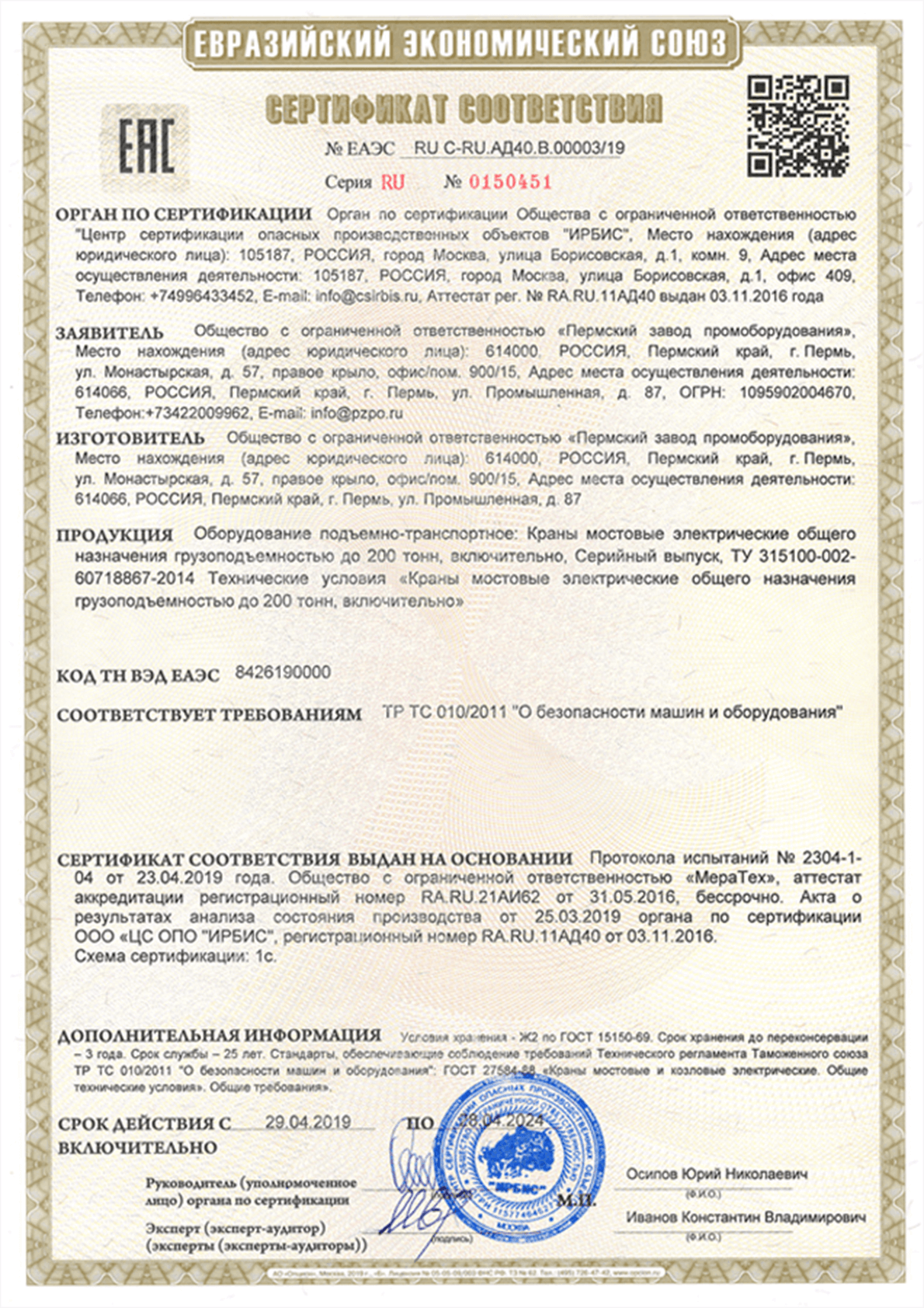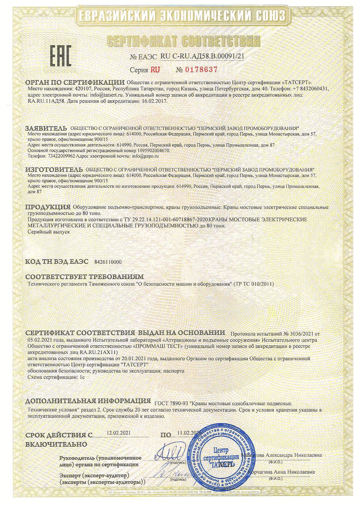 Сертификат сейсмичность 9 баллов двухбалочники 100т