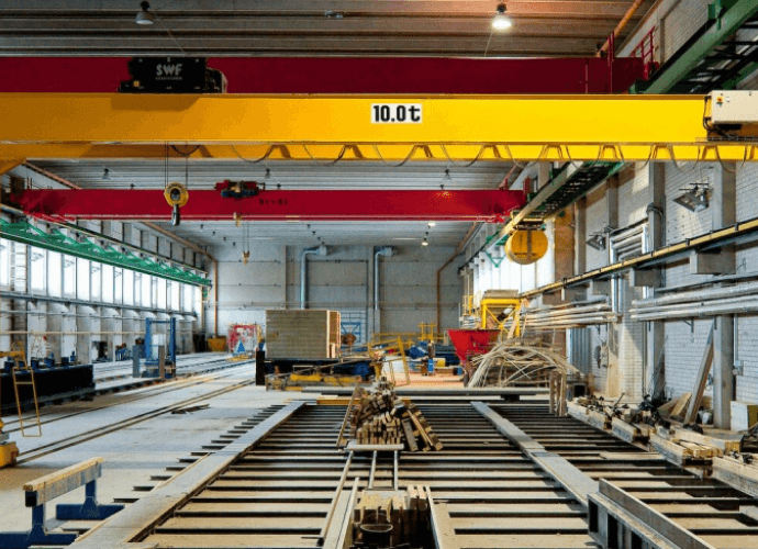 Подготовленные бетон и арматурные элементы транспортируются в рабочую зону. Кран полукозловой однобалочный, благодаря компактности, - приемлемое решение для оснастки этих участков. Одно из его преимуществ – допустимость применения в закрытых помещениях.